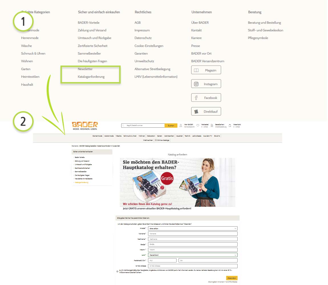Sie können sich jederzeit im BADER-Onlineshop für unseren kostenfreien Katalogversand anmelden. Hierzu gehen Sie im Onlineshop in den unteren Bereich auf "Kataloganforderung " und füllen einfach das Formular aus. Unsere aktuellsten Kataloge können Sie zudem hier unsere Kataloge online durchblättern. Viel Spaß beim Stöbern!