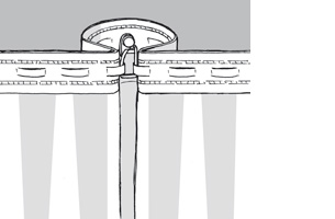 - Achten Sie darauf, dass Sie die Zugschnüre aufwickeln und nicht abschneiden!