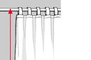 Überlegen Sie sich, wie lang Ihre Gardine sein soll. Wollen Sie, dass sie auf Höhe der Fensterbank endet bzw. auf Blumenfensterhöhe? Oder lieber bodenlang oder sogar auf dem Boden aufliegend? Wenn Sie diese Entscheidung getroffen haben, markieren Sie sich die gewünschte Stelle. Unsere Gardinen sind immer fensterfertig genäht - mit Universalschienenband, Faltenband, Smokband, Schlaufen oder Ösen. Messen Sie einfach von der Gardinenleiste bzw. der Stilgarnitur bis zur gewünschten Höhe.