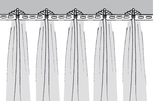 - Beim Universalschienenband können Sie den Faltenwurf selbst bestimmen. Sie benötigen die 2,5–3-fache Leistenbreite.